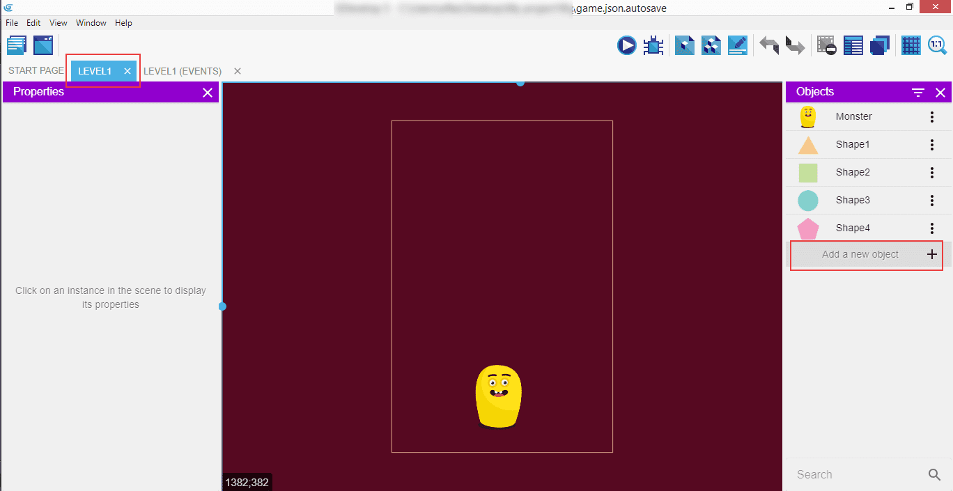 Click on the "Level1" tab, then "Add a new object".